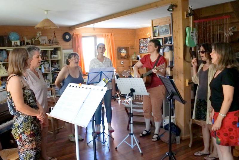 Si ce stage était au départ conçu pour des chanteurs ayant déjà au moins un peu pratiqué le chant à plusieurs voix, nous avons eu le plaisir d'accueillir de toutes nouvelles stagiaires enthousiastes, déjà chanteuses, mais n'ayant pas d'expérience du chant en harmonie. Plaisir en tant qu'organisateurs, bien sûr, mais difficulté supplémentaire pour Mathilde Cousin : devoir mener le stage complet avec des niveaux vraiment différents.