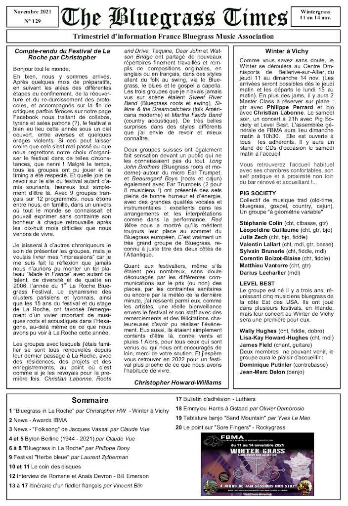 3. News - "Folksong" de Jacques Vassal par Claude Vue 20 Le point sur "Sore Fingers" - Rockygrass.